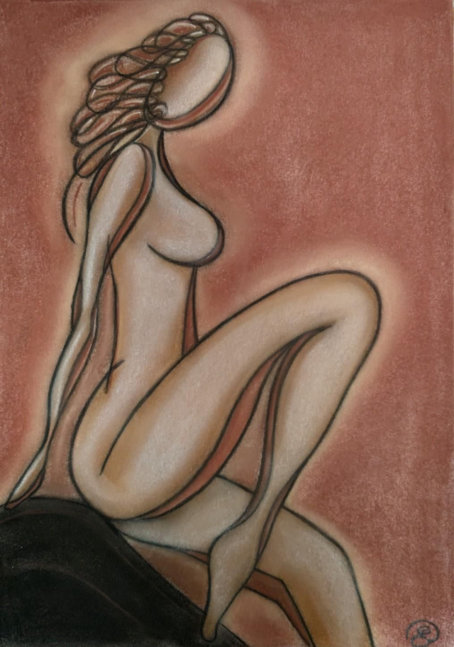 Carboncino seppia e gessi colorati su carta spessa, 30x42 cm, con cornice
