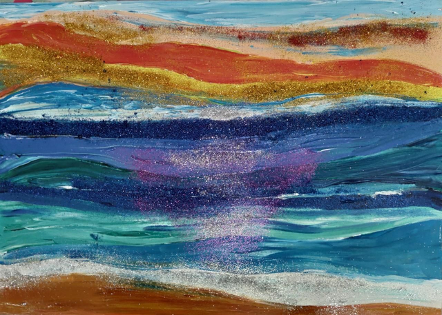 Colori acrilici e polveri colorate su carta spessa, 42x30 cm, con cornice