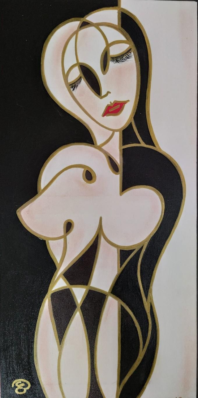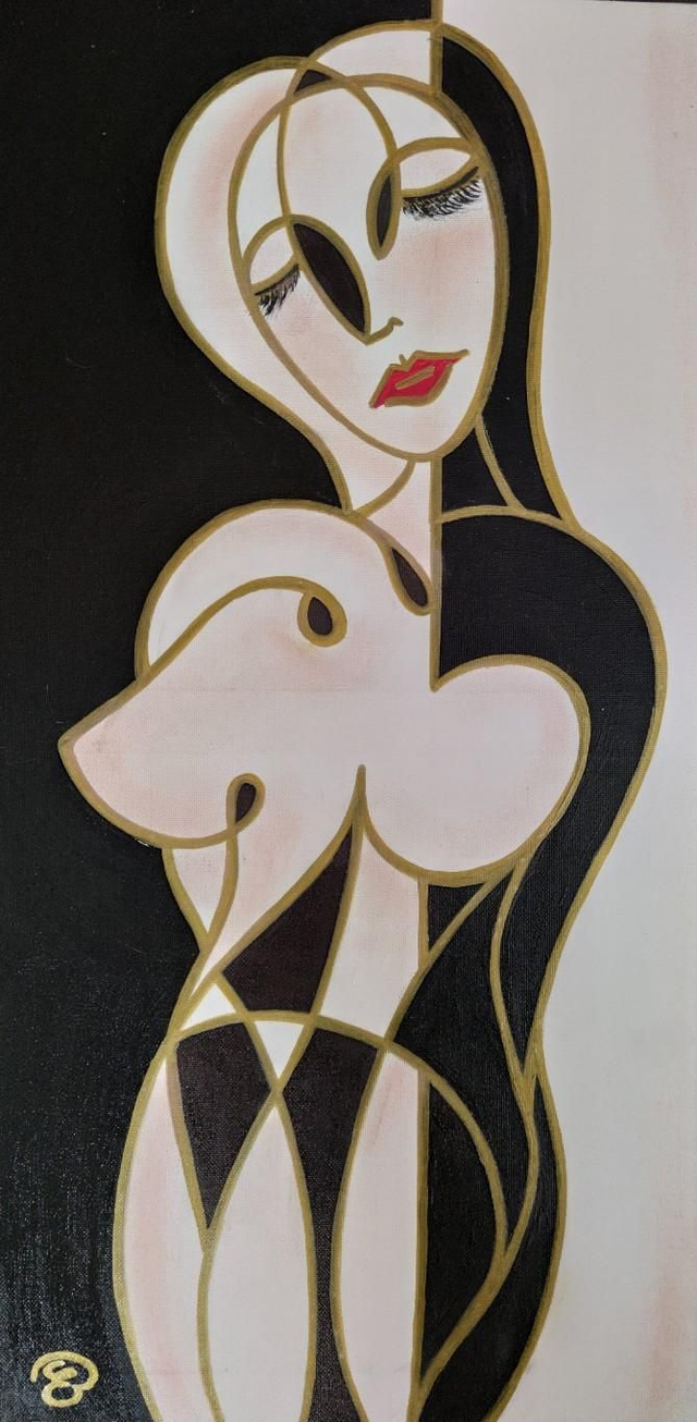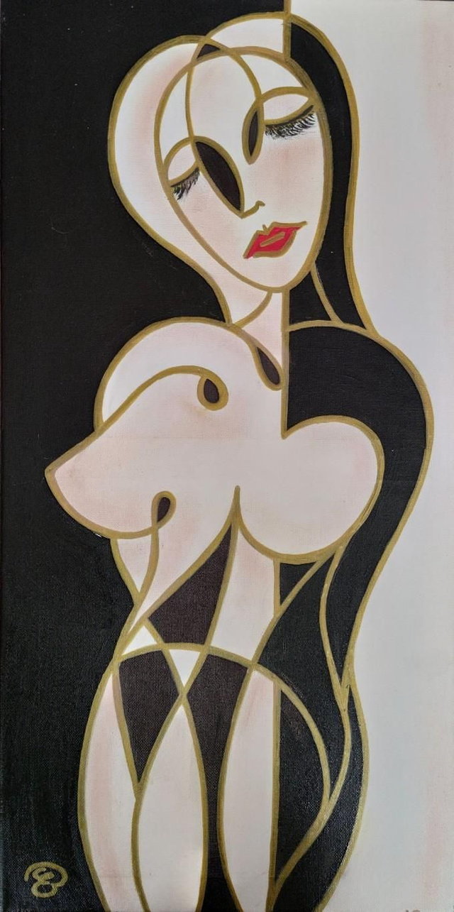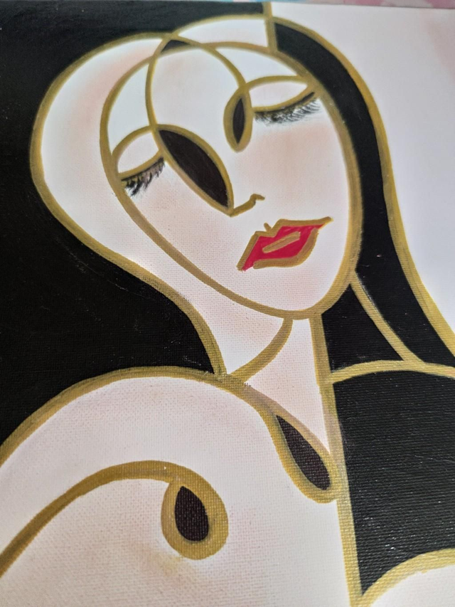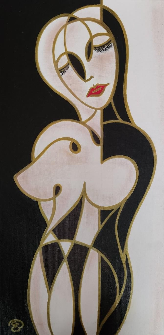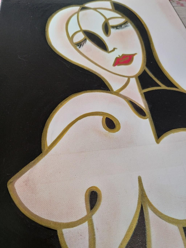 Colori acrilici, pennarelli e polveri colorate su tela, 30x60 cm, con cornice