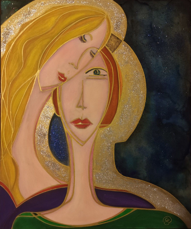 Grafite, acquerelli laccati, acrilici e polveri colorate su tela, 50 x 60 cm, con cornice