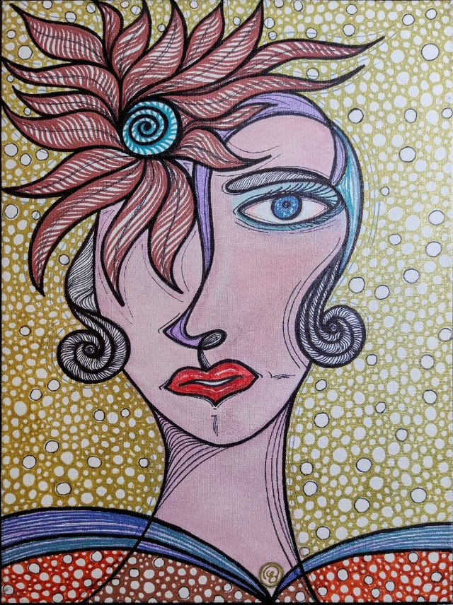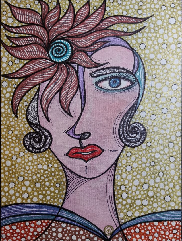 Colori acrilici e chine colorate su tela, 30x40 cm, con cornice